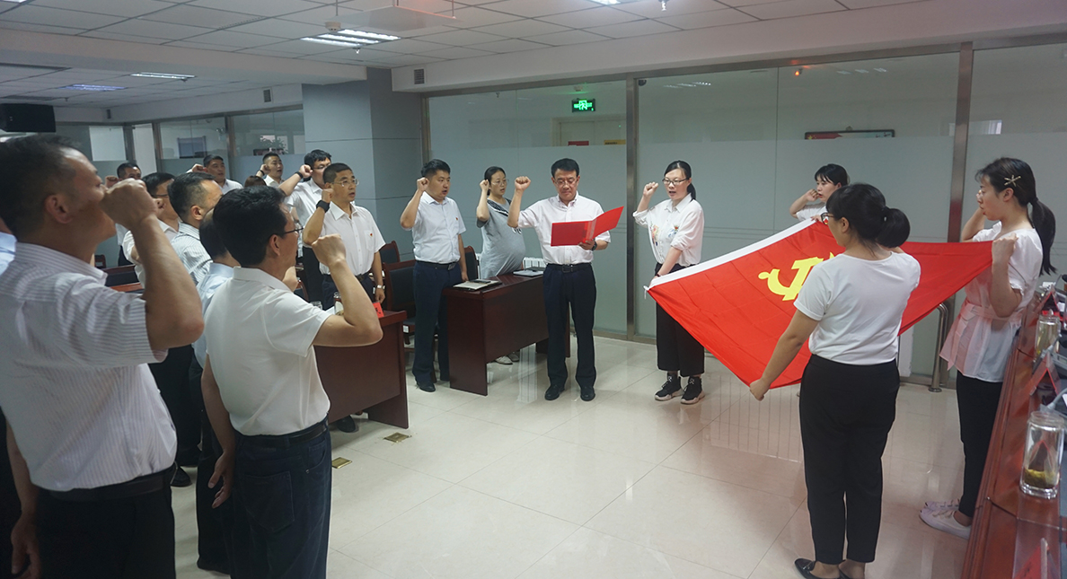 会上,全体党员及入党积极分子齐唱国际歌,在党旗下庄严宣誓,重温入党誓词,表彰了优秀党务工作者和优秀共产党员,进行了“坚持党建引领谋发展、创新融资投资谱新篇”汇报演讲。