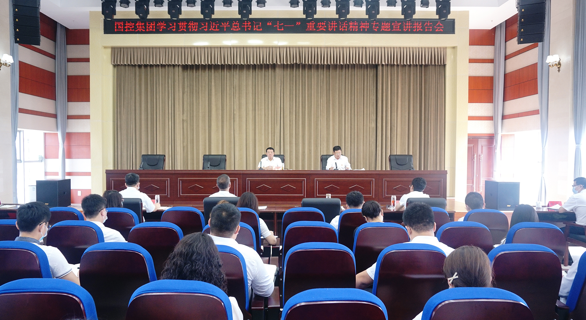 8月13日上午,开元官方网站-开元kaiyuan(中国)召开学习贯彻习近平总书记“七一”重要讲话精神专题宣讲报告会。集团公司党委书记、董事长张建军同志向广大党员干部职工作专题宣讲报告,党委副书记、总经理徐俊儒主持会议,领导班子全体成员、全体党员、本部全体职工及实际控制子公司中层及以上管理人员参加会议。
