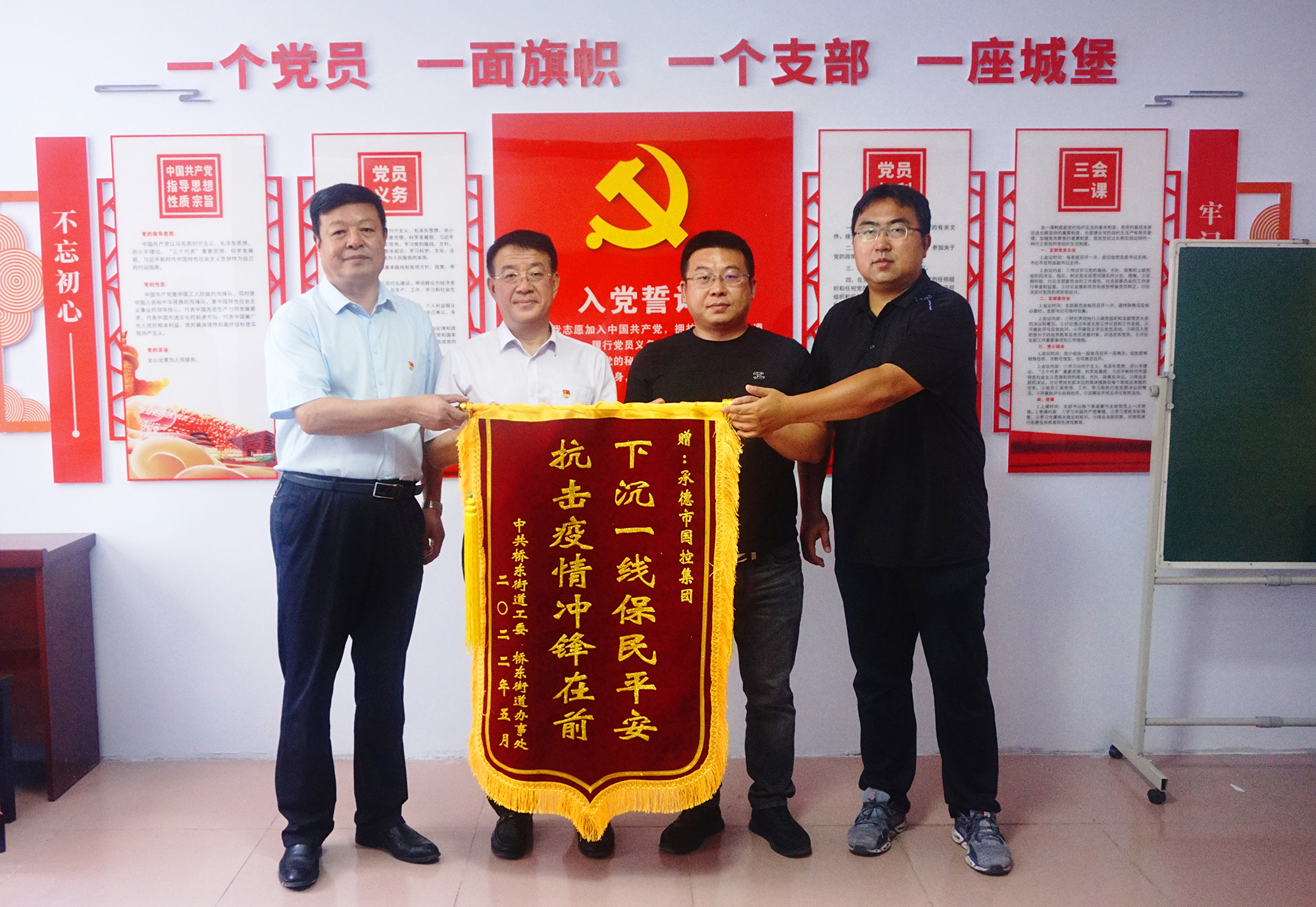 捐赠仪式后,开元官方网站-开元kaiyuan(中国)领导班子与桥东街道、会龙山社区主要负责人,就结对帮建工作进行座谈,详细了解了创城工作开展情况、存在问题及下一步打算,针对社区基础设施不完善、公共停车泊位施划不合理、楼道杂乱和小广告乱贴等问题,研究制定了具体举措。会上,为感谢开元官方网站-开元kaiyuan(中国)在抗击疫情和结对帮建工作中的大力支持,桥东街道、会龙山社区向集团公司赠送了“下沉一线保民平安、抗击疫情冲锋在前”锦旗。