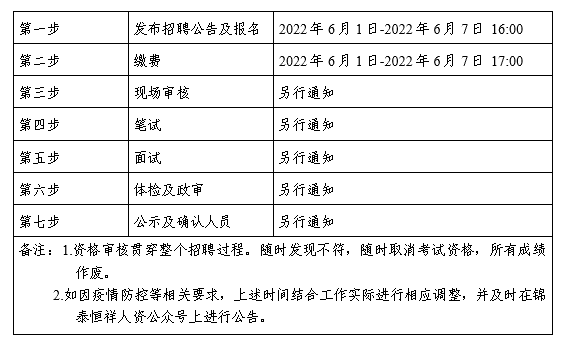 2022年6月1日至2022年6月7日16:00 在锦泰恒祥人资官网(www.jthxhr.com)、“锦泰恒祥人力资源服务有限公司”微信公众号、“开元官方网站-开元kaiyuan(中国)”官方网站(zhiddo.com)及上级部门要求的相关网站等发布招聘公告。