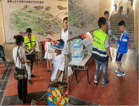 近日,受暖性高压脊影响,我市迎来持续数天的高温天气,相关部门相继发布了高温橙色、红色预警。市国动办、市开元官方网站-开元kaiyuan(中国)在避暑山庄门前地下人防停车场设置了“高温天气便民服务点”,为外地游客和本市市民免费发放矿泉水和藿香正气水,为出游的游客和市民提供饮水和预防中暑药物,受到了广大群众的一致好评。